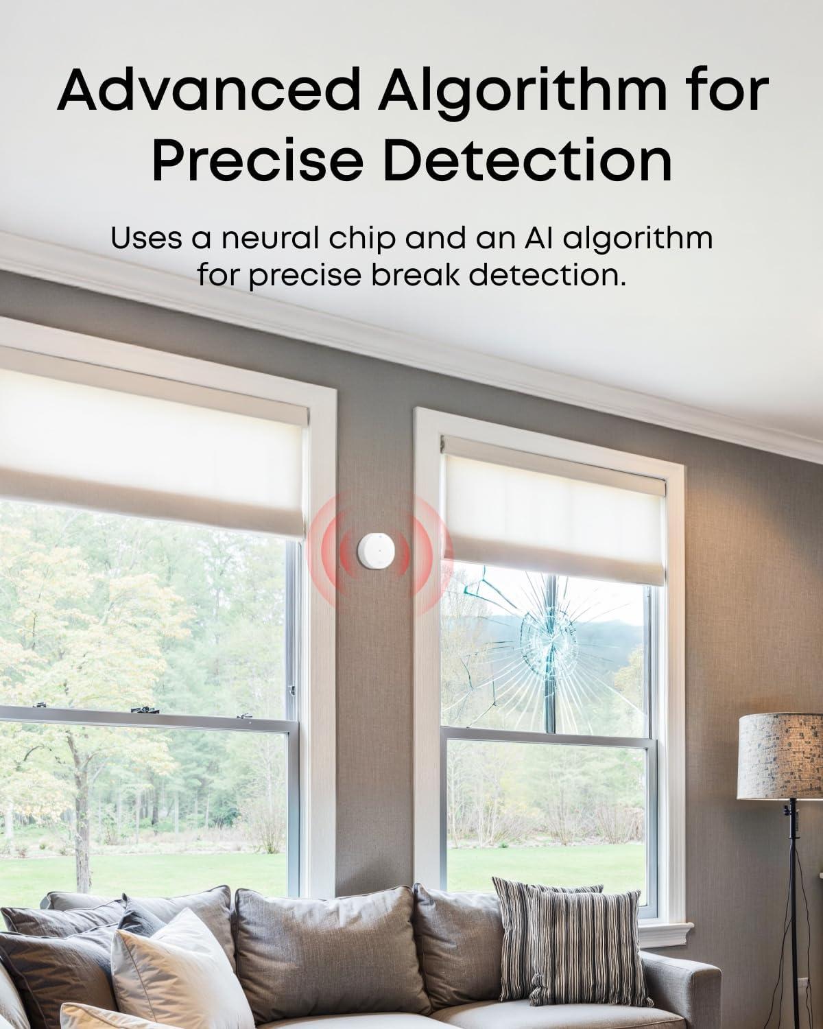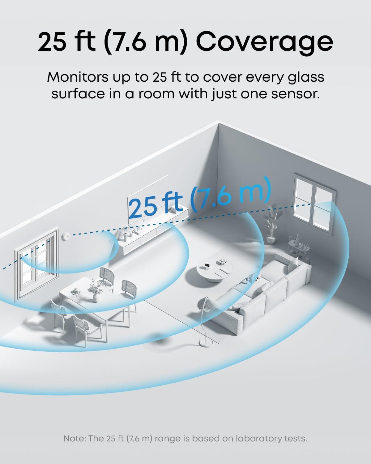 eufy Glass Break Sensor E10, Precision Detection with Advanced Algorithm, 25 ft Range Coverage Area, Long-Lasting 3-Year Battery Life, Compatible with HomeBase 2, 3, Mini, and Pro