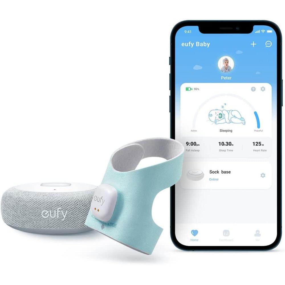 eufy Security Baby Smart Sock Baby Monitor with 2.4 GHz Wi-Fi, Track Sleep Patterns, Naps, Heart Rate, AI Cry Detection, Pan and Tilt, No Monthly Fee